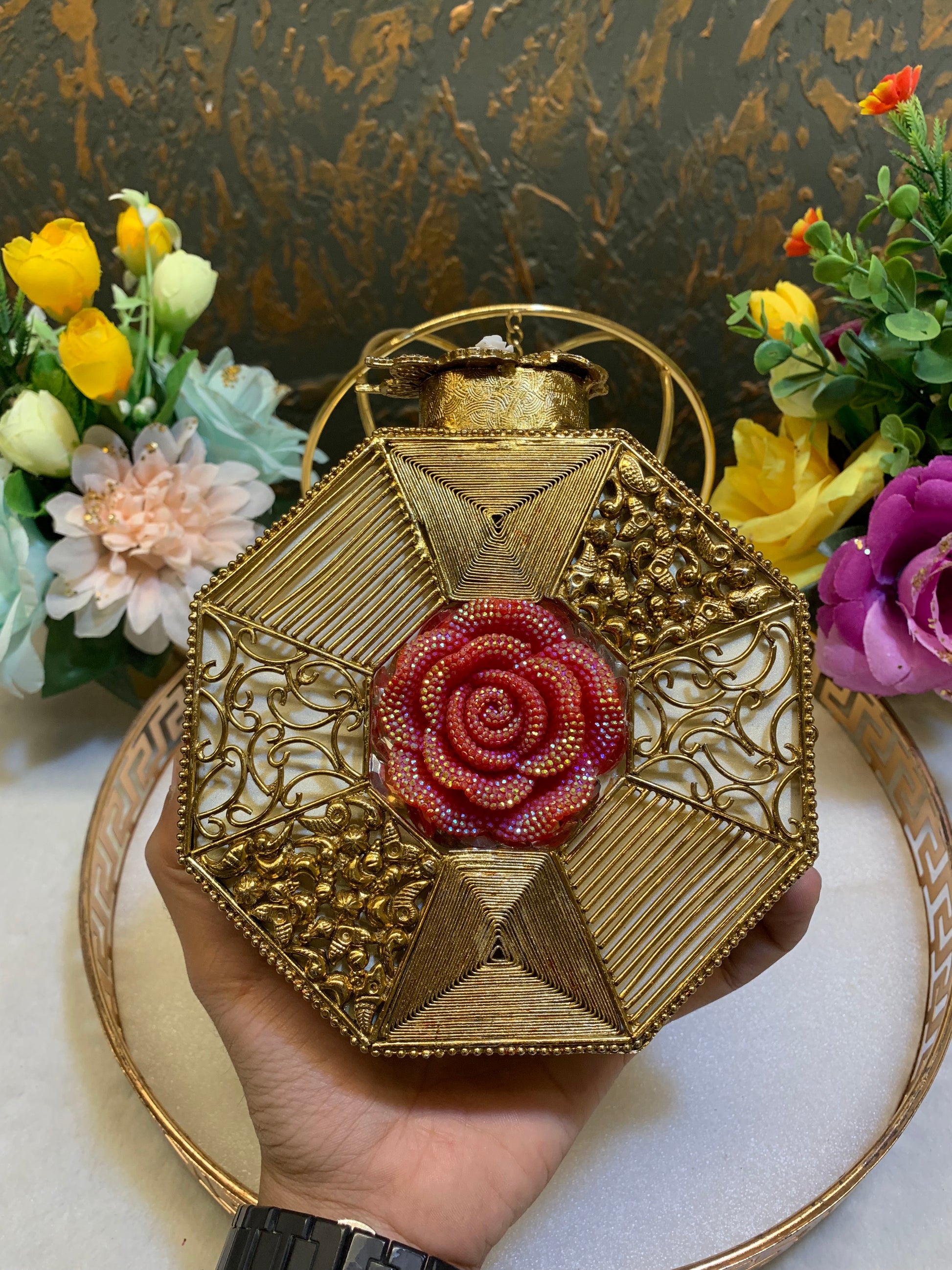 This Turkish Clutch is expertly handmade with high quality materials. Its traditional design showcases cultural and historical significance, making it a unique accessory for any outfit. The intricate details and vibrant colors add a touch of elegance to your style. Perfect for any occasion.