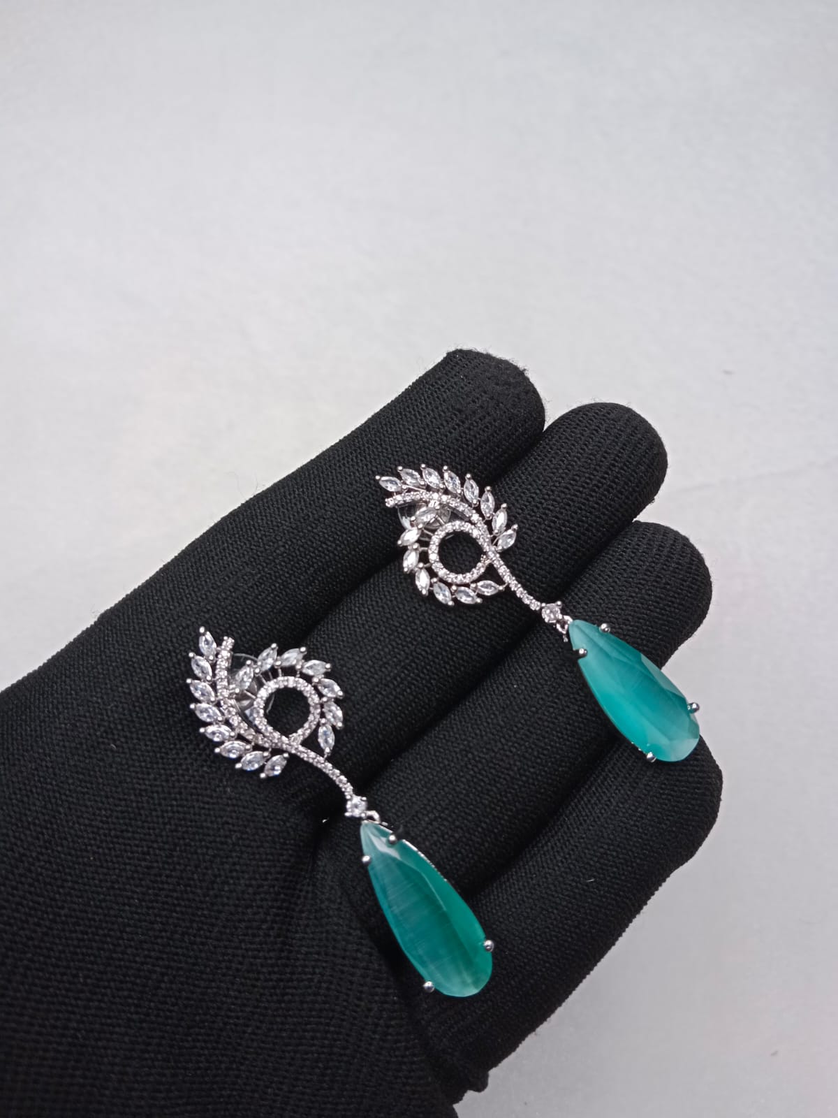 These Indian zircon earrings add a touch of elegance to any outfit. Crafted with expert precision, they feature sparkling zircon stones that catch the light from every angle. Elevate your style with these timeless earrings.